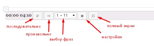 На экране появляется список фраз, по ним можно кликать и пройти "1 этап" тренировки.
